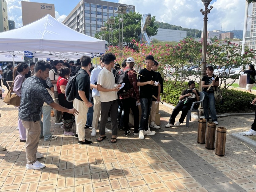 On September 12, 2024, Global College of Kyungsung University hosted its annual Chuseok Festival for international students, providing an exciting opportunity to celebrate Korea's rich cultural traditions. Students were welcomed with a festive atmosphere and were treated to Songpyeon, a traditional rice cake specially made for the Chuseok holiday.